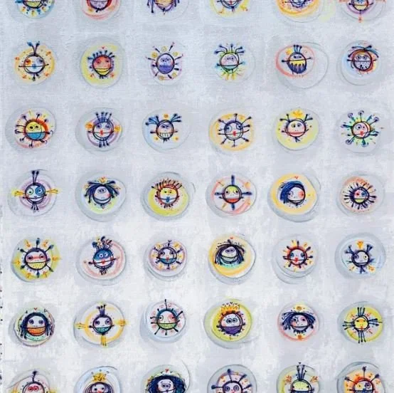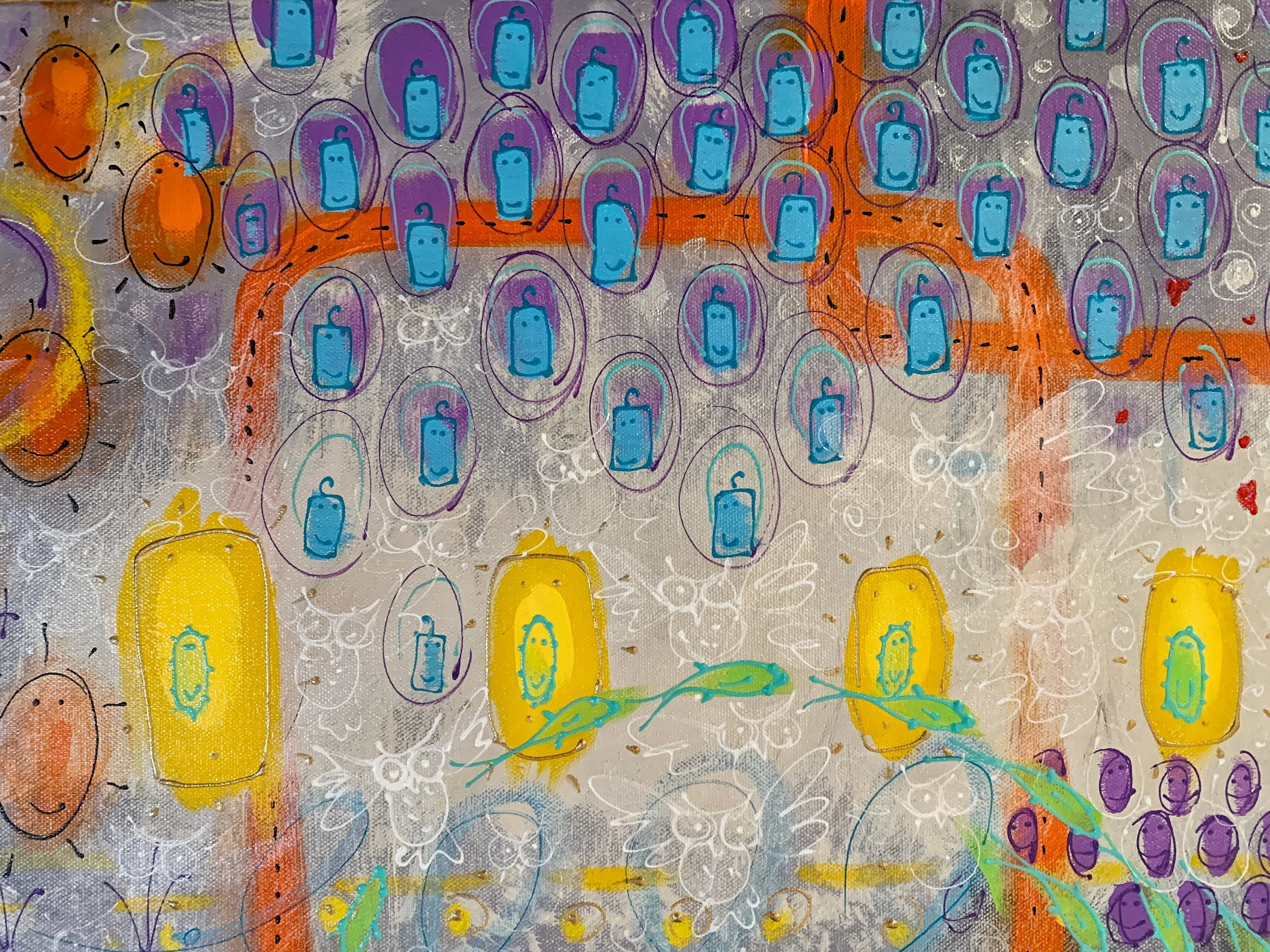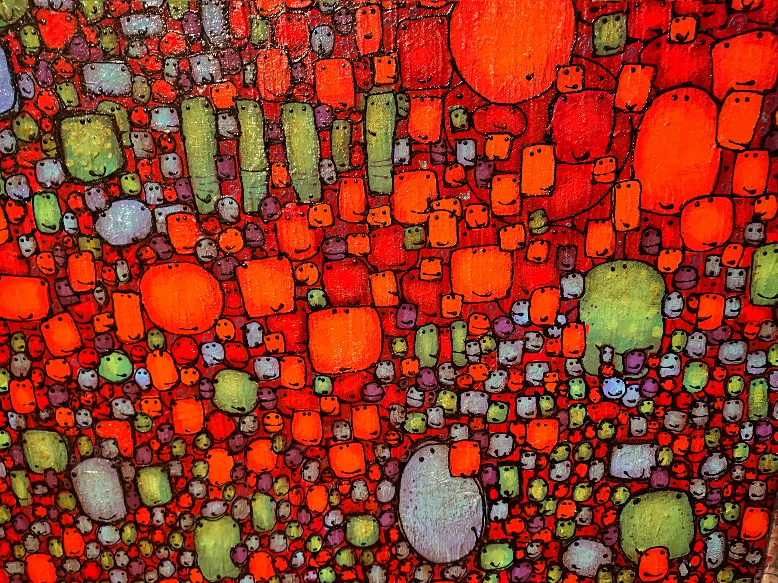 Known for his warm, rich pallet, uplifting themes, and humorous takes on the human condition, his work is most often described as… “Happy.” 😊
