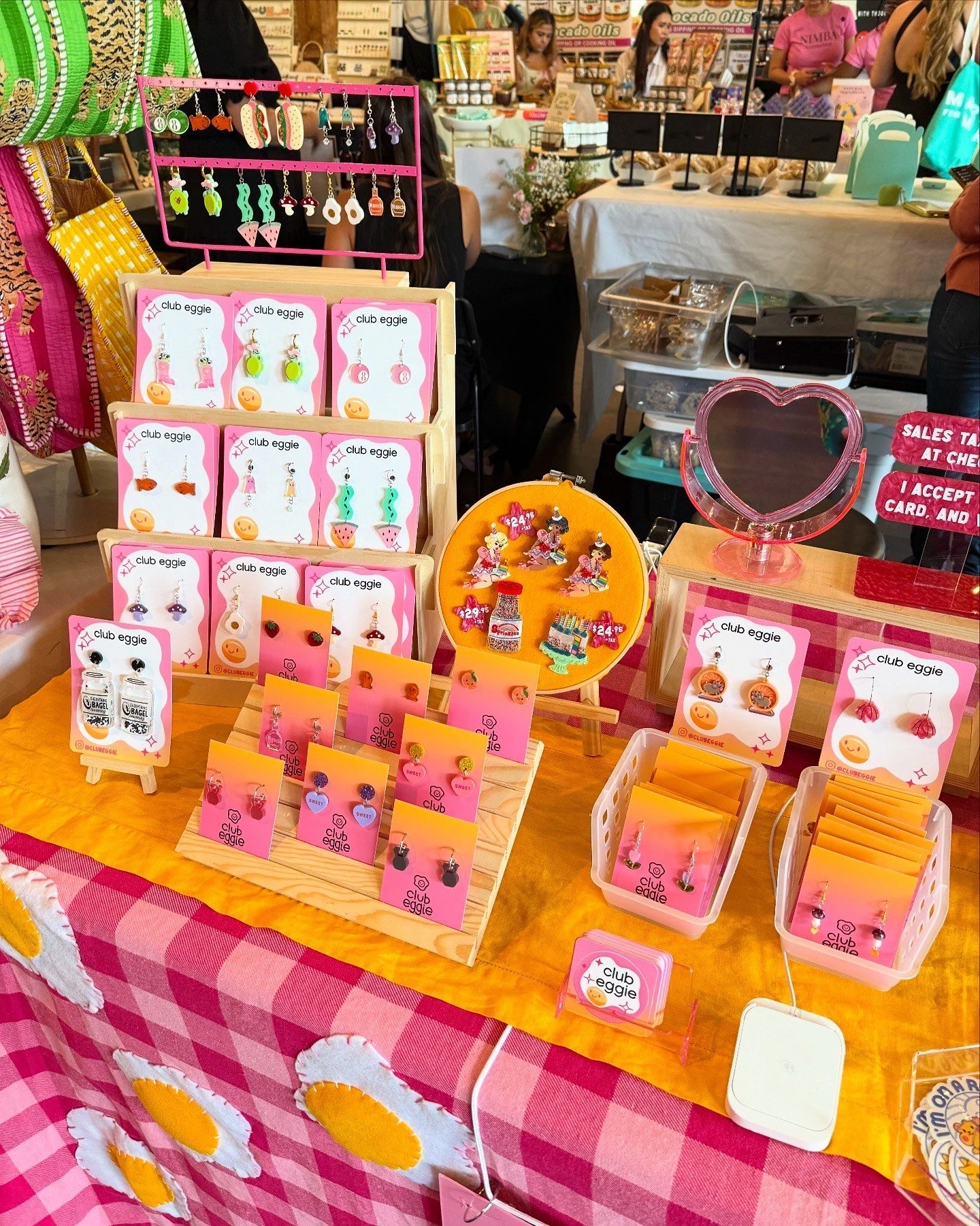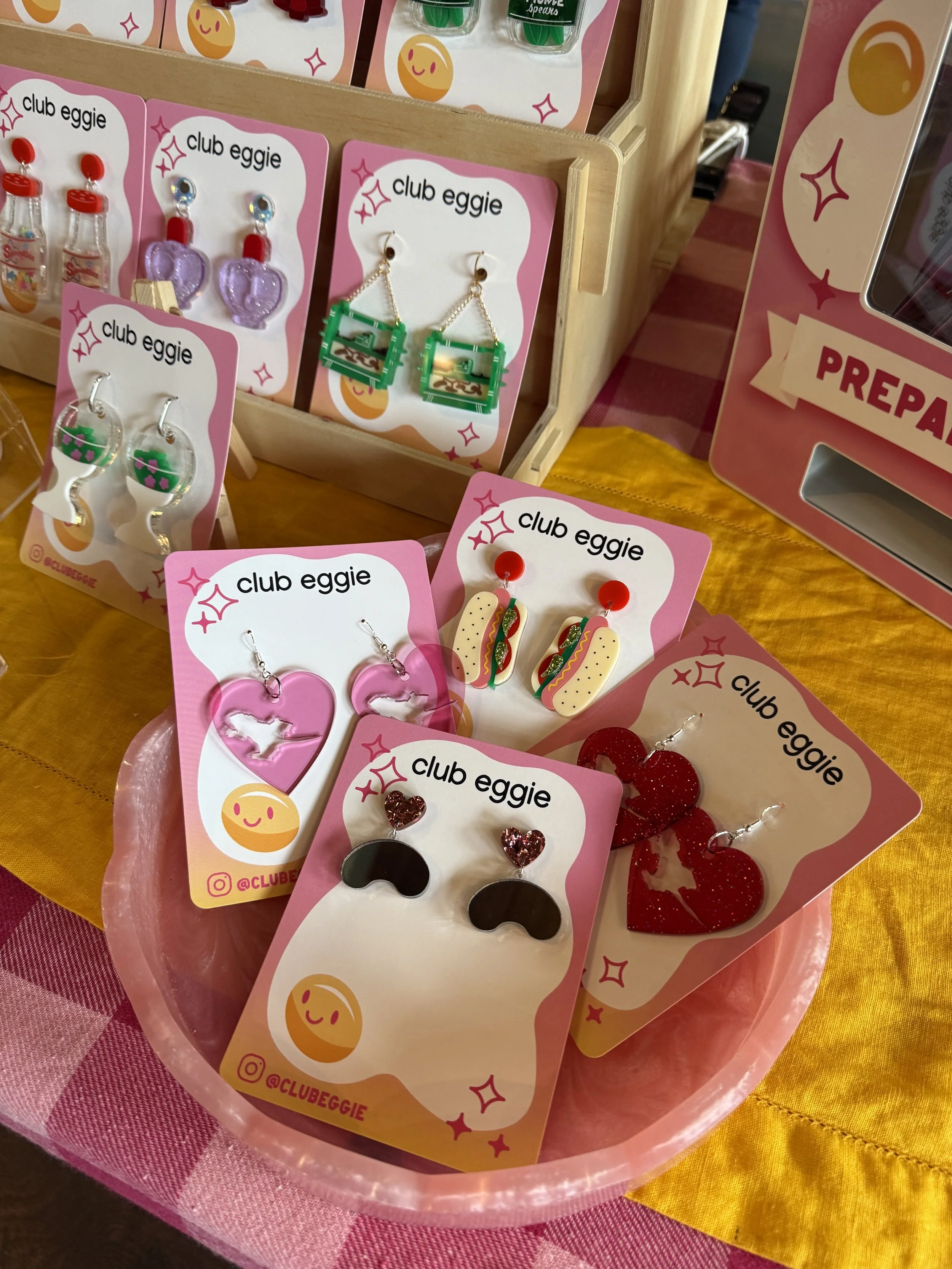 Meet Ellie Grace, the imaginative mind and steady hand behind Club Eggie Jewelry—a world where color, sparkle, and humor collide in the most delightful way. Her pieces don’t just accessorize; they start conversations. With every swing, shimmer, and glint, they invite you to smile, play, and remember that joy is worth wearing.